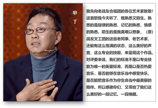 节目现场,看完北京老战友合唱艺术团演唱的评委们也情绪激动。