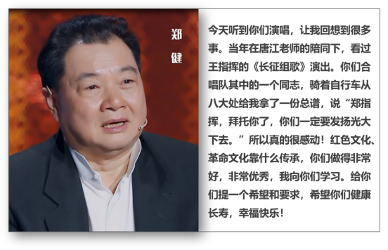 张惠林老师作为1965年《长征组歌——四渡赤水出奇兵》首演领唱的B角,晚年时虽然身体并不好,但怀着对《长征组歌》无限的热爱及对长征精神的传承发扬,始终坚持排练和演出,并从首演领唱的B角变成了如今领唱的A角。