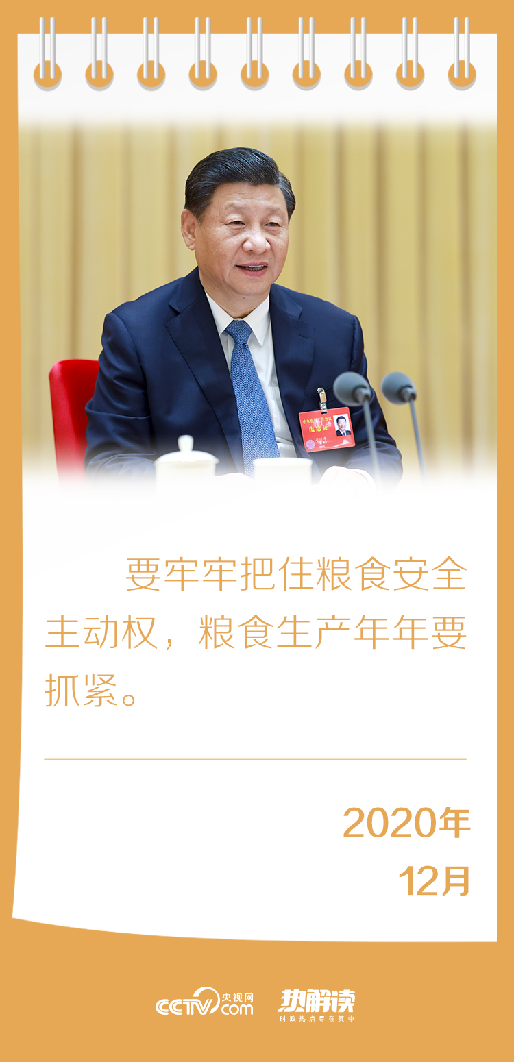 在今年的中央农村工作会议上,习近平总书记再次强调,要牢牢把住粮食安全主动权,粮食生产年年要抓紧,并就此提出多项具体要求。