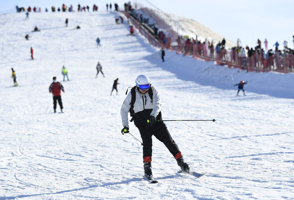 1月30日,市民在宁夏银川市阅海滑雪场体验滑雪运动。