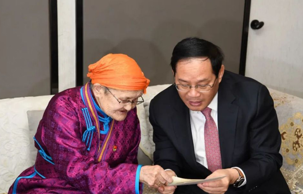 6月2日,上海市代表团登门看望都贵玛老人,询问她日常起居照料等情况,倾听她讲述抚养“国家的孩子”心路历程,再次感谢内蒙古人民的大爱无疆!