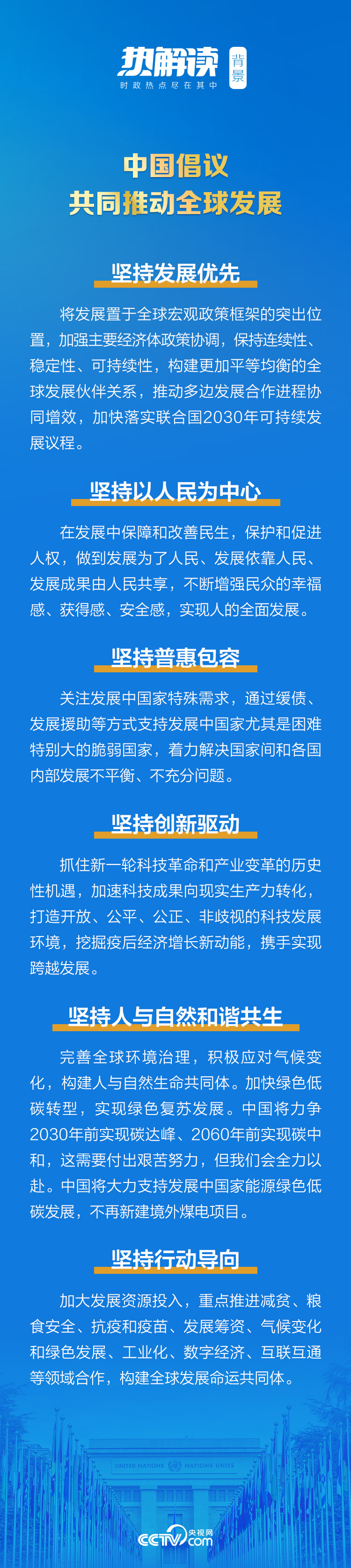 在此大背景下,习近平主席在此次联合国大会上提出关于全球发展的六点倡议,旨在推动实现更加强劲、绿色和健康的全球发展,推动全球发展迈向平衡、协调和包容的新阶段。