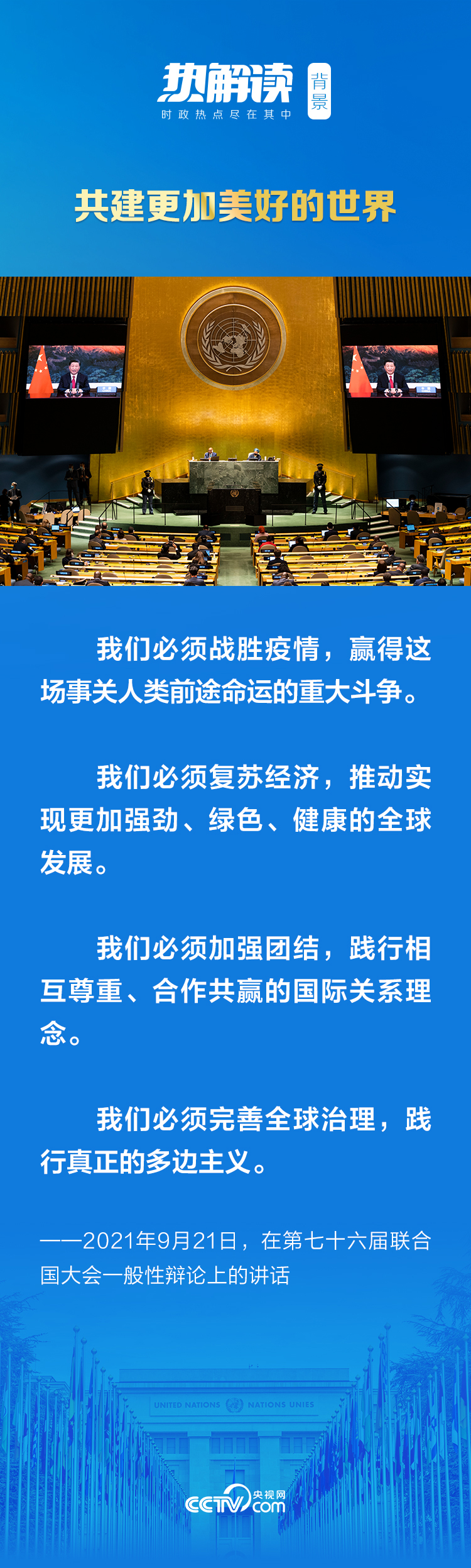 热解读9月21日,习近平主席以视频方式出席第七十六届联合国大会一般性辩论,并发表题为《坚定信心 共克时艰 共建更加美好的世界》的重要讲话。