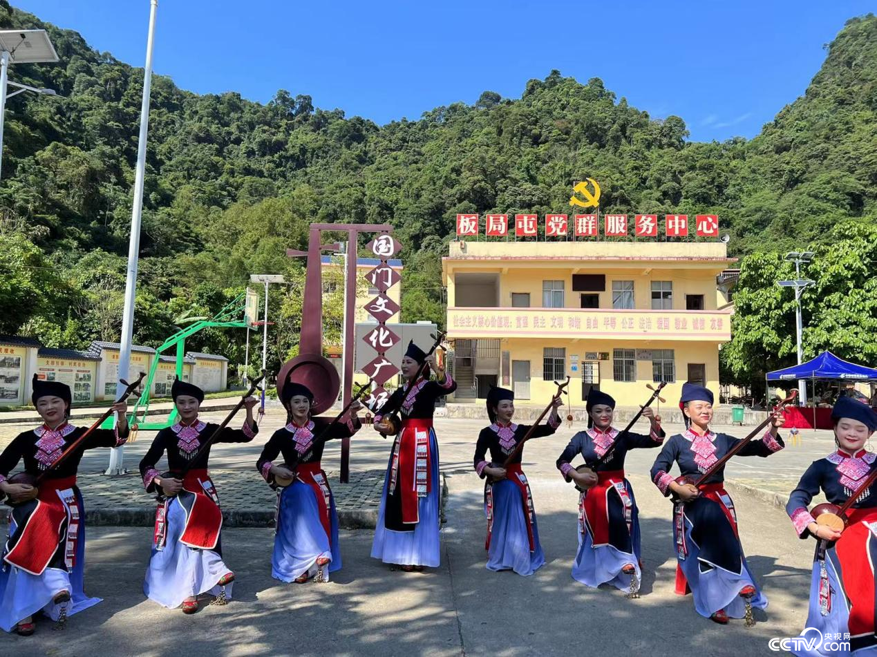 龙州县布局村群众演奏天琴,歌声礼赞新生活。 孙晓媛/摄