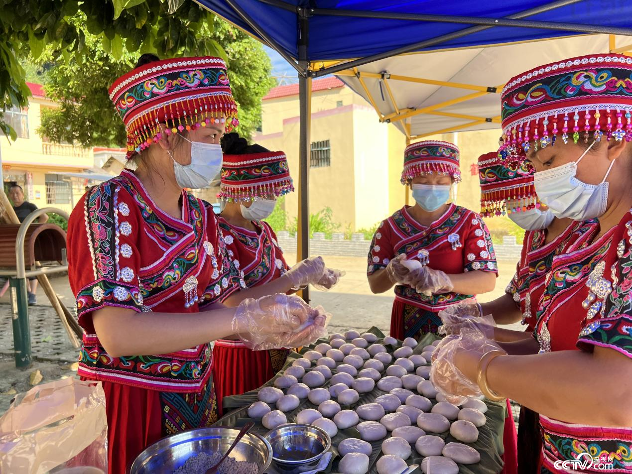 当地村民做糍粑 孙晓媛/摄