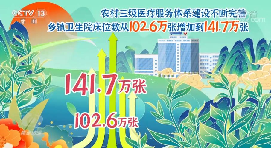 农村三级医疗服务体系建设不断完善,乡镇卫生院床位数从102.6万张增加到141.7万张,村级卫生室执业(助理)医师从19.3万人增加到47.6万人,乡村就医条件持续改善。