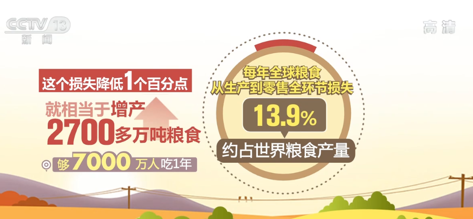 据联合国粮农组织数据,每年全球粮食从生产到零售全环节损失约占世界粮食产量的13.9%。这个损失降低1个百分点就相当于增产2700多万吨粮食,够7000万人吃1年。