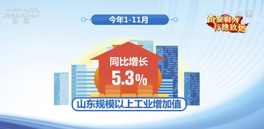 今年1—11月,山东规模以上工业增加值同比增长5.3%,41个工业行业大类中,近七成行业保持增长,高技术制造业增势良好,实现增加值同比增长14.5%,引领山东经济高质量发展。