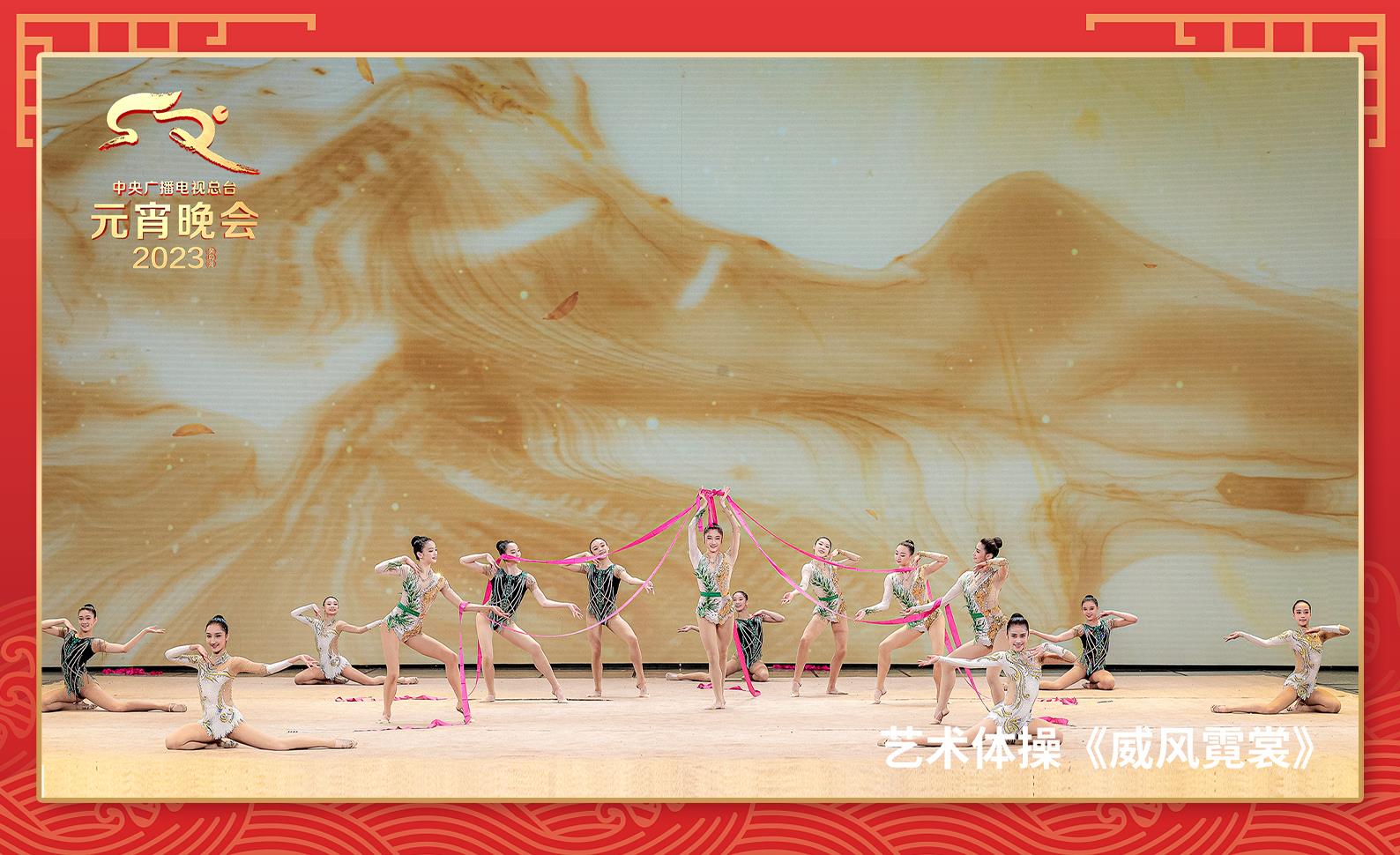 本场晚会的又一吸睛之作来自中国国家艺术体操队带来的体操表演《威风霓裳》。节目将艺术体操的灵动飘逸与国风元素的深厚底蕴相结合,为观众献上一场国家队“顶流”水平的视觉盛宴。力量与美的完美结合让网友纷纷惊呼,“舍不得眨眼,生怕漏了精彩”“国家队果然不一样”。中国国家艺术体操队主教练孙丹难掩激动的心情:“这种电视化的呈现太美了,尤其是背景视觉的变幻,完全不同于赛场的展示。大家都在赞叹,简直是惊艳!这是我们所有体育人的骄傲!”