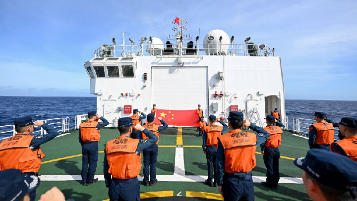 南海影像日志丨中国海警在黄岩岛海域缅怀先烈