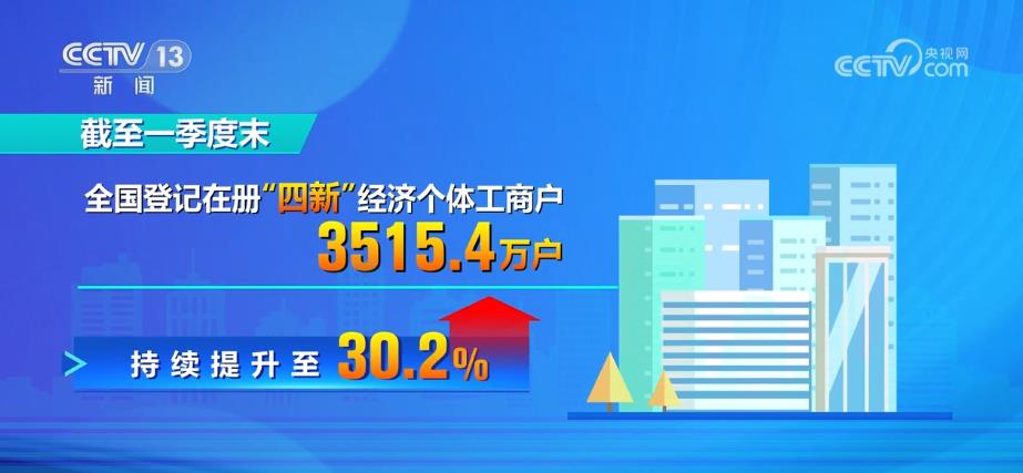 近年来,随着新技术、新产业、新业态、新模式的蓬勃发展,网络直播、微商电商等“新个体经济”不断涌现,为我国经济转型升级注入了新的活力。截至一季度末,全国登记在册“四新”经济个体工商户3515.4万户,总量占比由2019年的24.9%持续提升至30.2%。