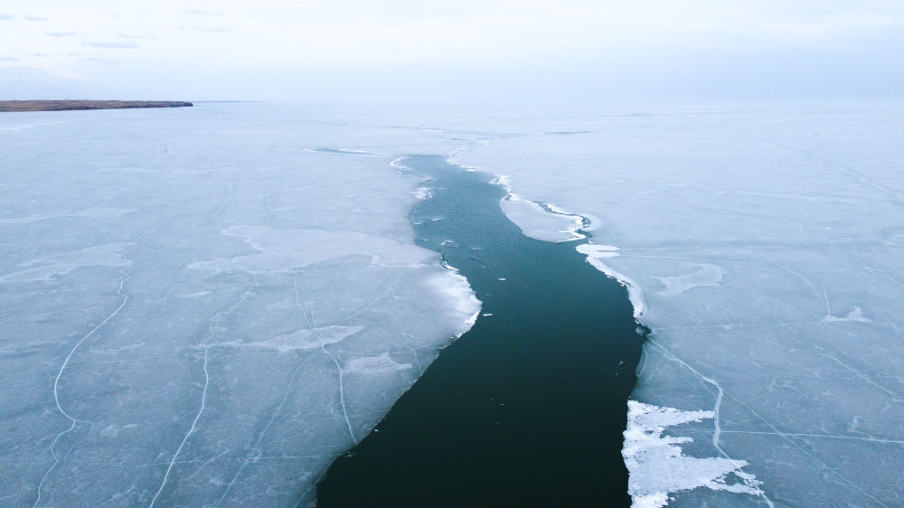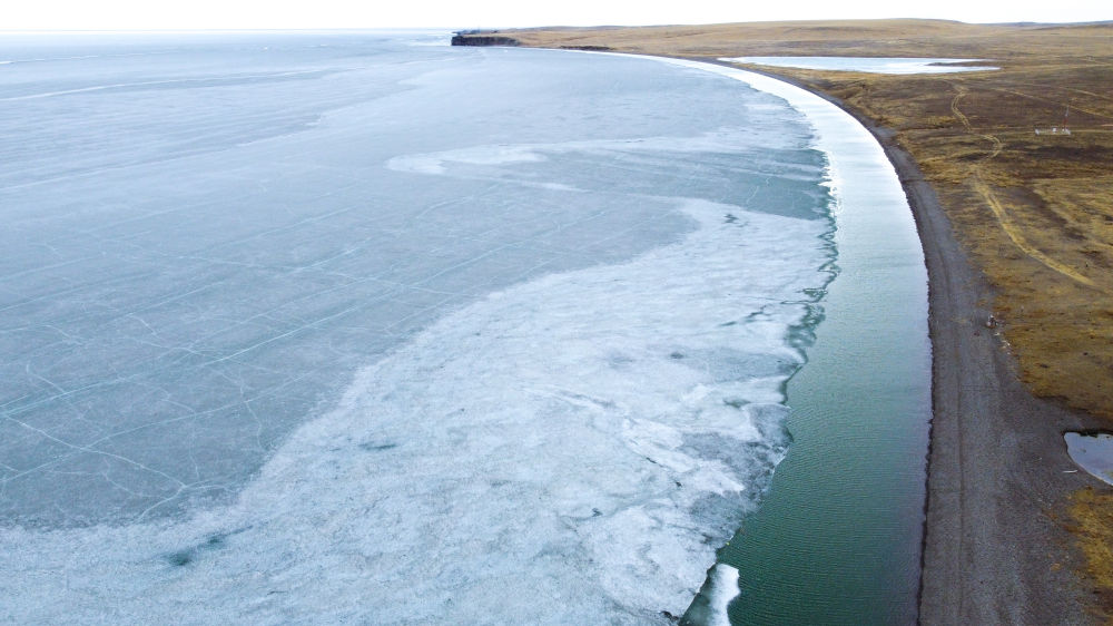 这是4月17日拍摄的呼伦湖开湖景象(无人机照片)。新华社记者 王楷焱 摄