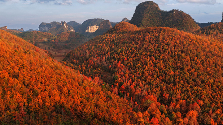 贵州黔南州:惠水喀斯特峰林枫叶绚烂夺目