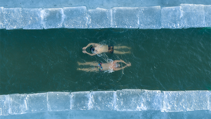 黑龙江大庆:冬泳爱好者破冰游泳健身