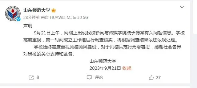 ·青年女教师举报遭博导侵害,山东师范大学回应:正在调查核实。