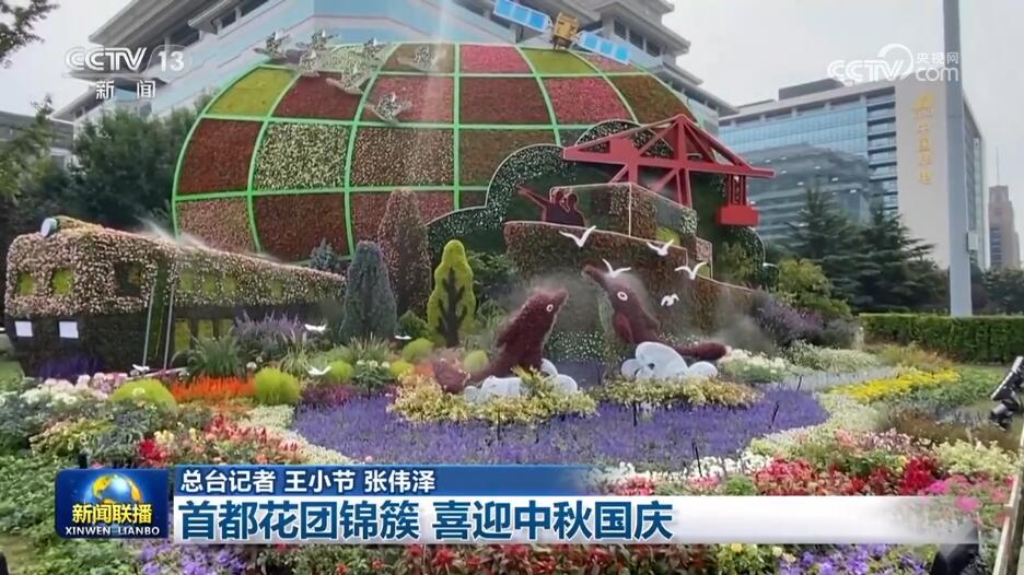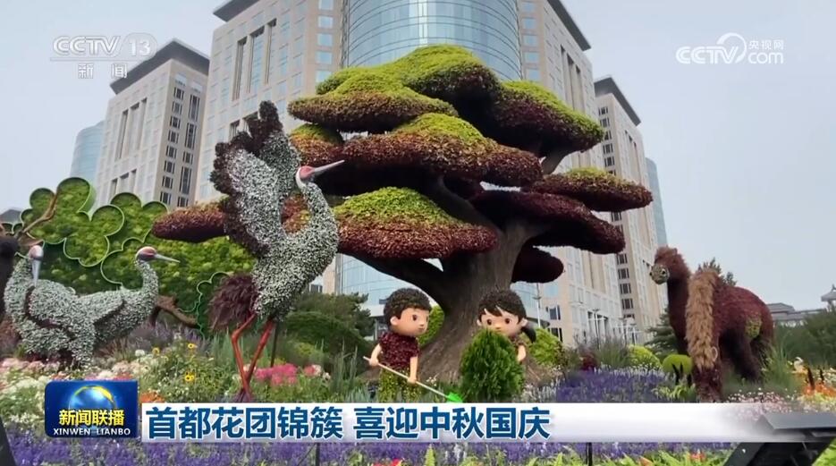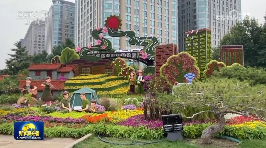 与此同时,长安街建国门至复兴门之间,布置了10组不同主题的大型立体花坛。