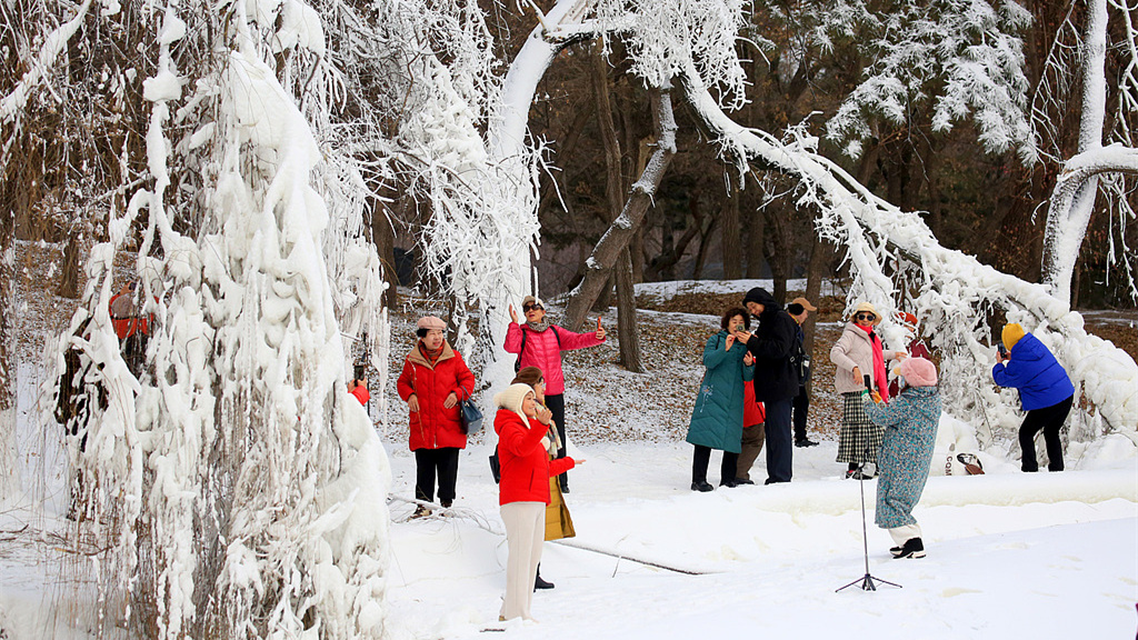 广西蒙山:夕阳映照醉兰湖公园色彩斑斓