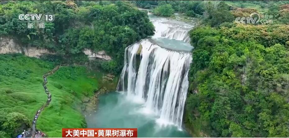 现在您看到的是贵州黄果树瀑布。奔流的白水河从高空陡然落下,撞击在犀牛潭中发出阵阵轰鸣。国庆假期期间,景区客流量达到高峰,为引导游客错峰出行,从每天早上6点半开始,景区分6个时段进行网上提前预约入园。
