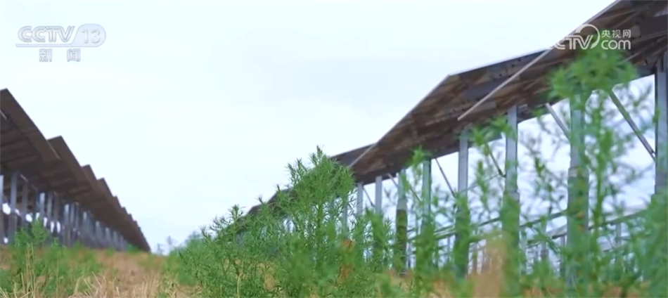 记者注意到,对比大多场景下的光伏板而言,该光伏项目桩基高度明显偏高。工作人员告诉记者,项目将光伏组件中心点提升至距地面3米,为生态治沙和板间种植留足空间,目前已探索出种植多肉植物、茄子、辣椒等农作物,下一步将开展中药材和牧草种植试验,全力打造首个“沙戈荒”能源基地的示范标杆。