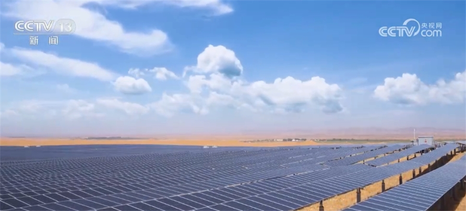 在宁夏腾格里沙漠风光基地一期项目现场,220余万块光伏板在阳光下熠熠生辉,1700多万平方米的草方格连绵不绝,“戈壁成瀚海,沙漠焕新颜”正是该项目的真实写照。