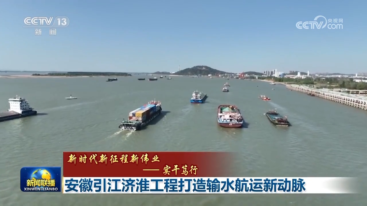 央视网消息(新闻联播):安徽依托国家重大水利工程——引江济淮工程,加快配套项目设施建设,水资源优化配置能力不断提升,黄金水道作用显著增强,为沿线地区高质量发展提供了新动力。