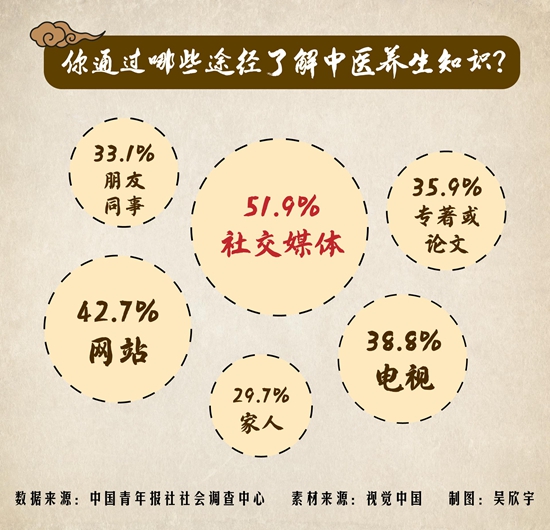 如今,随着“中医热”的不断升温,互联网平台充斥着大量内容参差不齐的中医养生知识,各个社交媒体平台也有不少“养生博主”,正在成为年轻人获取中医知识的重要来源。中国青年报社社会调查中心近日的一项调查显示,51.9%的受访青年会选择通过社交媒体平台了解中医养生知识,这是年轻人获取中医养生知识的最主要途径。面对鱼龙混杂的网络信息,如何分辨真伪?中青报·中青网记者采访了中国中医科学院望京医院特色诊疗中心副主任医师范肃,结合当前中医养生热门话题,总结了中医养生中常见的几大误区。