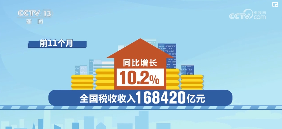 总体来看,11月当月,全国税收收入10579亿元,同比增长3.2%。前11个月,全国税收收入168420亿元,同比增长10.2%。