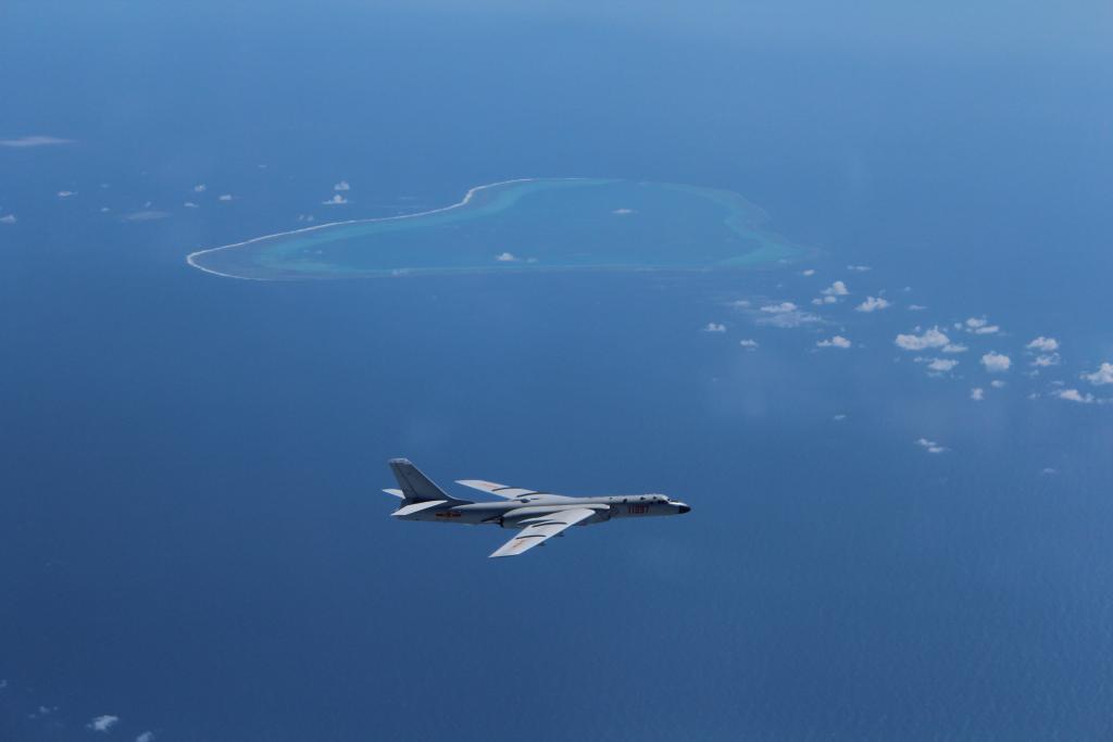 这是轰-6K战机在黄岩岛上空巡航(资料照片)。新华社发