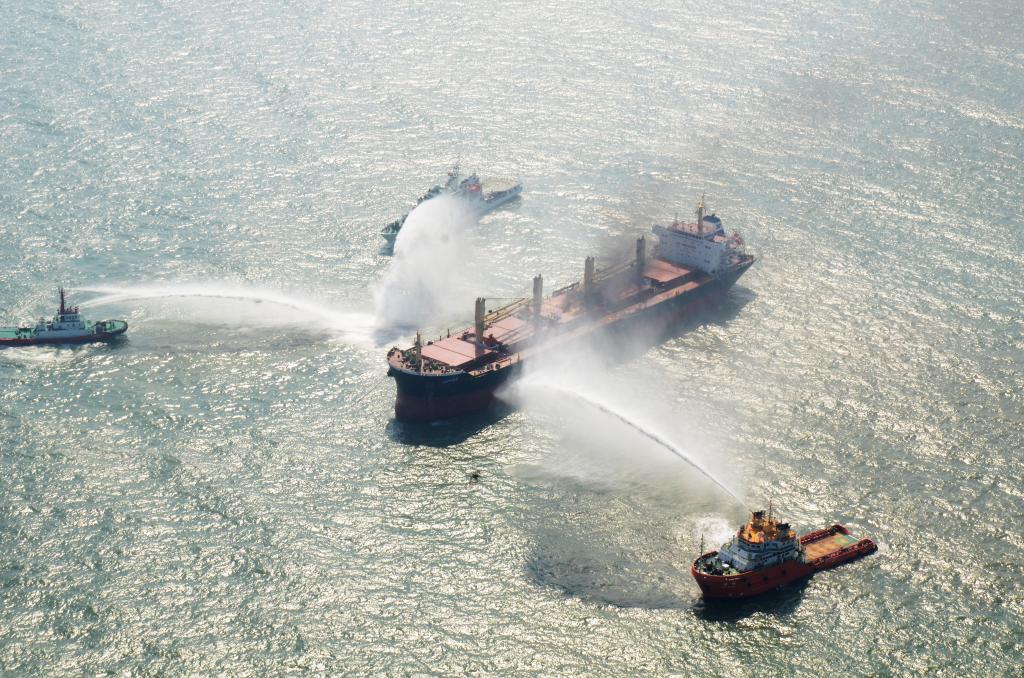2017年10月31日,中国-东盟国家海上联合搜救实船演练在广东湛江海域举行。该演练是各方落实《南海各方行为宣言》的一次海上务实合作项目。新华社记者毛鑫摄