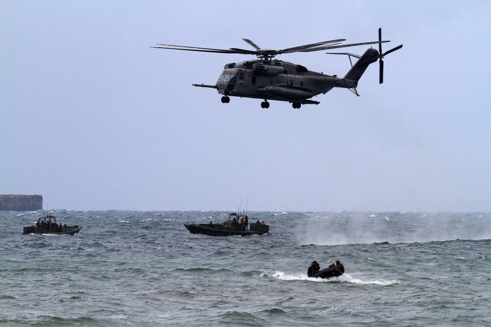 2013年9月20日,在菲律宾甲米地省,一架美军CH-53E军用直升机运载美国和菲律宾士兵参加演习。新华社发(乌马利摄)