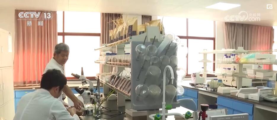 画面中这位正在观察稻谷的人叫余新桥,是上海市农业科学院研究员,利用南繁的土地专研水稻育种工作已经有40年了。每年冬天,余新桥都会带团队到这里进行育种栽培,他所在的育种团队以前是研究传统水稻的,后来转而研究节水抗旱稻。