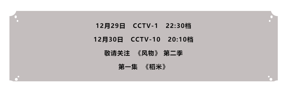 2023年12月29日起,纪录片《风物》(第二季)的七期节目将在央视综合频道CCTV-1 晚间 22:30档,陆续播出。第二季节目秉持着《风物》第一季的创作理念,用独具特色的精美镜头、贯穿古今的风物故事、地跨南北的格局视角,展现了中国大地独具特色的风物特产。节目以习近平文化思想为统领,通过挖掘七种中华大地上最具代表性的时令特产,展现其深层的文化逻辑、历史根脉和生活智慧,以独特的文化担当、强烈的文化自信,生动描摹了一幅幅独特鲜活的“中国风物版图”,打造了一部部影像版“国家风物画卷”,揭示了中华优秀传统文化中天人合一、万物和谐共生的文化理念和价值追求。