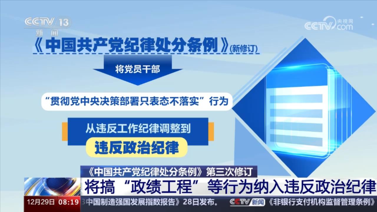 正在阅读:新修订《中国共产党纪律处分条例》明确,搞“政绩工程”、交“政治骗子”等严肃处理