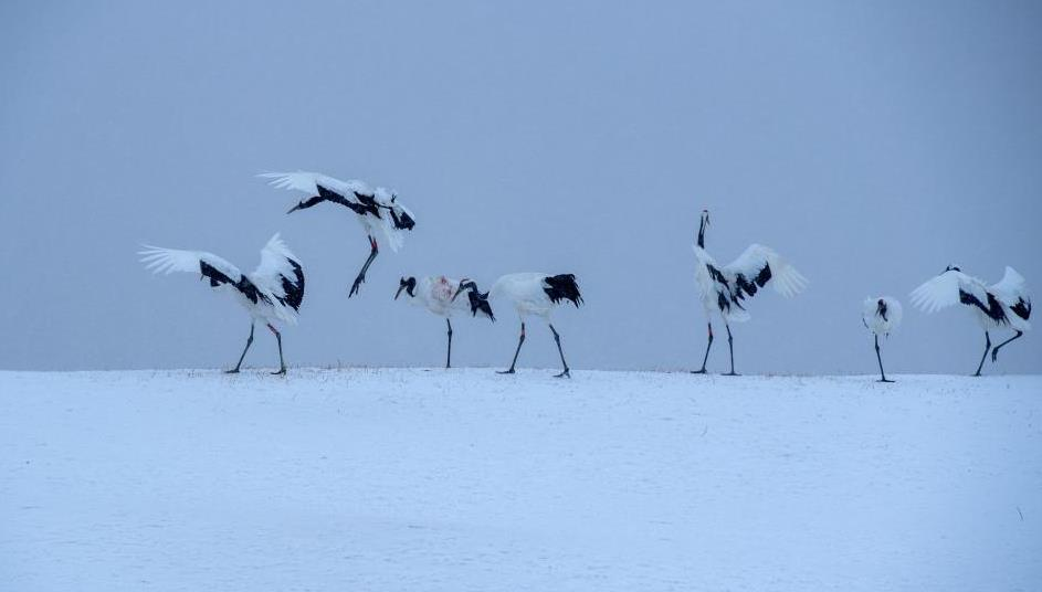2024年1月4日,黑龙江齐齐哈尔,扎龙自然保护区,丹顶鹤雪中漫步。