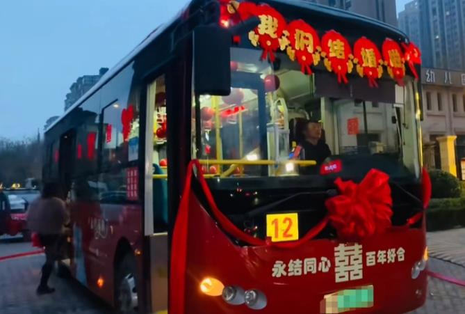 ·河南郑州一对90后夫妻用公交车当婚车:比传统婚车更热闹有趣,租豪车没有任何意义。
