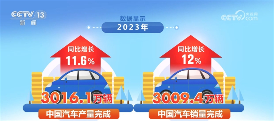 数据显示,2023年,中国汽车产销量分别完成3016.1万辆和3009.4万辆,同比分别增长11.6%和12%。跨上年产3000万辆级的新台阶,中国汽车工业发展史上迎来了新的里程碑。