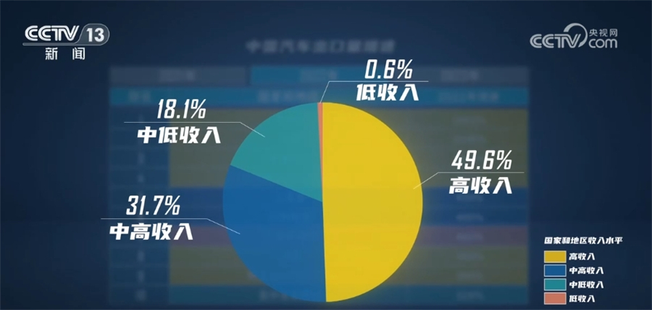 而当我们把2022年的出口数据跟世界银行划分的收入水平分类比对时,看到当年出口增速最快的前三个都属于高收入国家,这一年,中国出口汽车的近一半都去了高收入国家和地区。