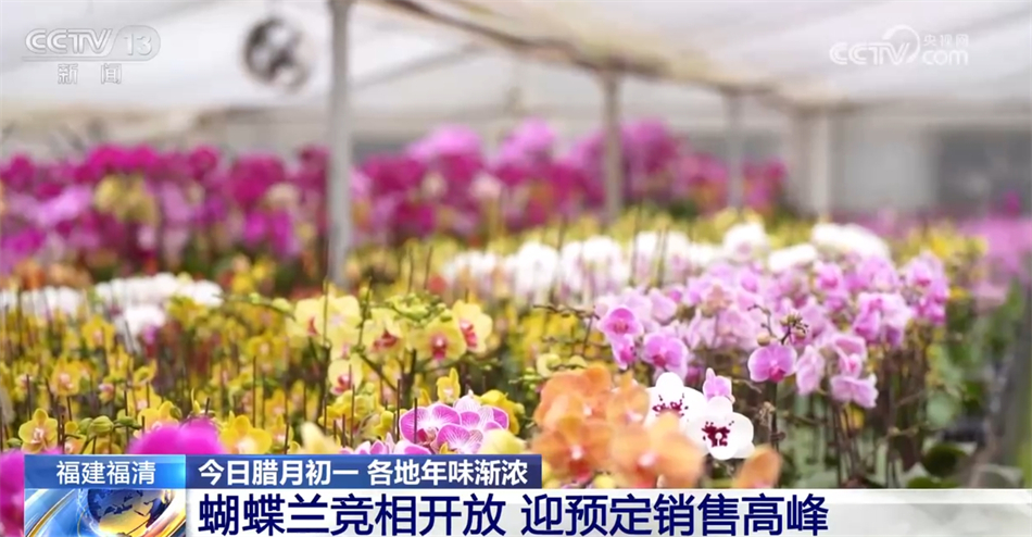 在福清市镜洋镇的蝴蝶兰种植基地,各色蝴蝶兰竞相开放、长势喜人。作为特别受欢迎的年宵花之一,今年镜洋镇种植的30万株蝴蝶兰目前大部分都已被预定。