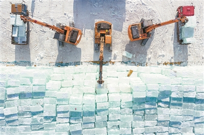 每年哈尔滨冰雪大世界搭建完成后,存冰工作随即启动。“此时松花江上冰的厚度超过60厘米,可在其中挑选较完整的冰块进行存储。”哈尔滨冰雪大世界市场营销部副部长孙泽旻介绍。