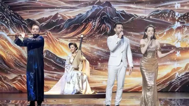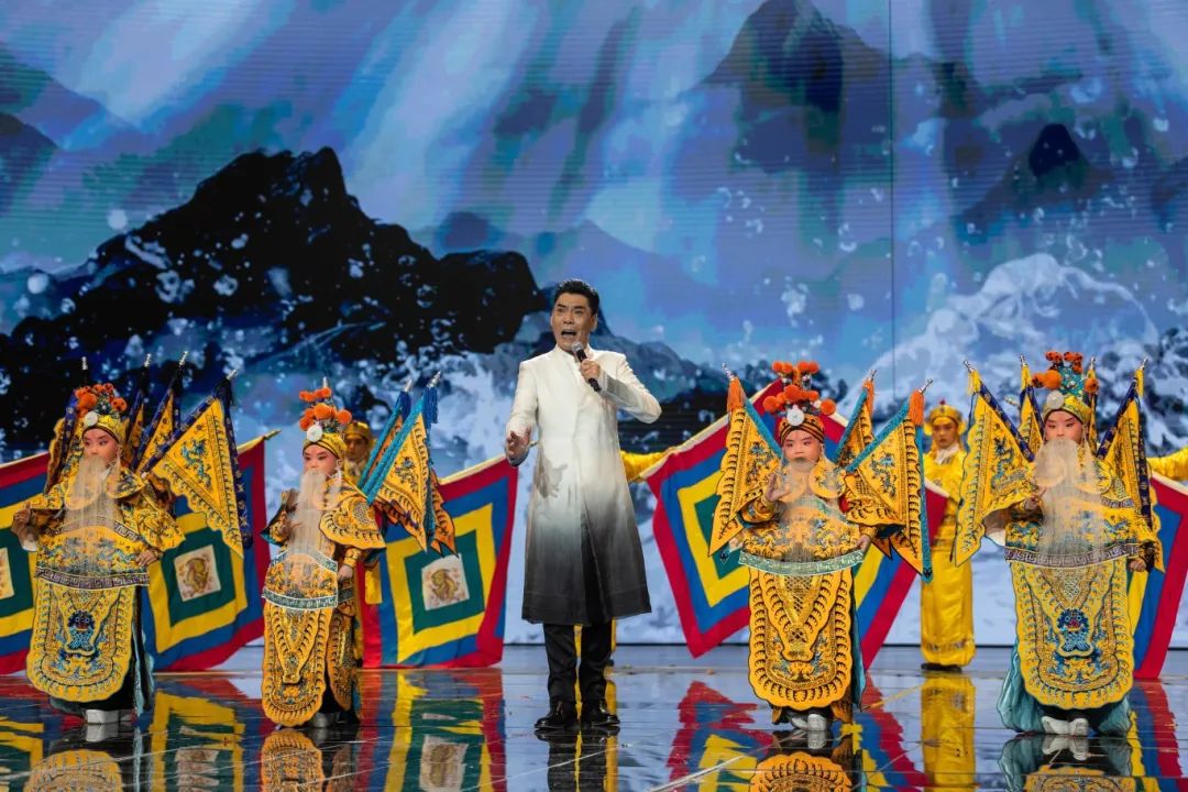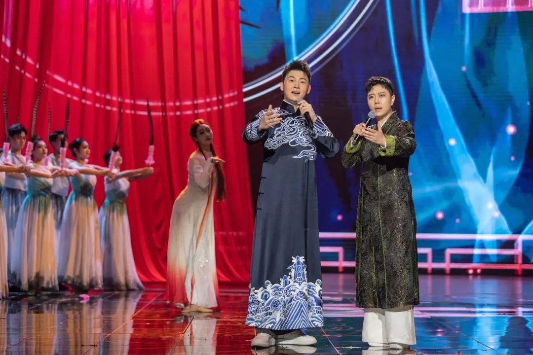 《念奴娇·赤壁怀古》由裘识、王子演唱,通过将古典诗词和戏腔唱法相融合,配合琵琶伴奏,让中国传统优秀文化在光影交错间一展新貌。