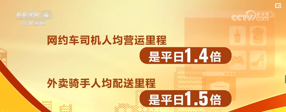 数据显示,2月9日当天,网约车人均营运里程是平日的1.4倍,外卖骑手人均配送里程是平日的1.5倍。大数据测算,除夕当天,大约有7.4万网约车司机、32.5万外卖骑手和5.5万快递员在北京市的大街小巷奔波。