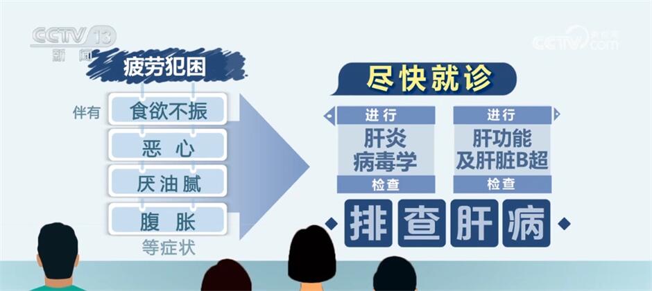 肝脏是个“沉默的器官”,而且肝脏上没有痛觉神经分布,因此在患病初期,人体很难察觉到。如果疲劳犯困的同时,还伴有食欲不振、恶心、厌油腻、腹胀等症状,应尽快到医院就诊,进行肝炎病毒学、肝功能及肝脏B超等检查来排查肝病。