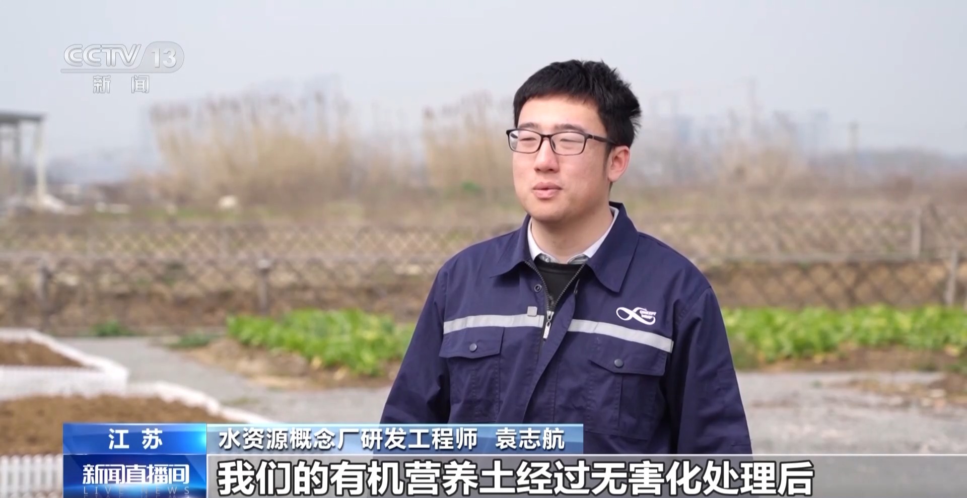 水资源概念厂研发工程师 袁志航:我们的有机营养土经过无害化处理后,会在这边进行资源还田,进行资源化利用的尝试。