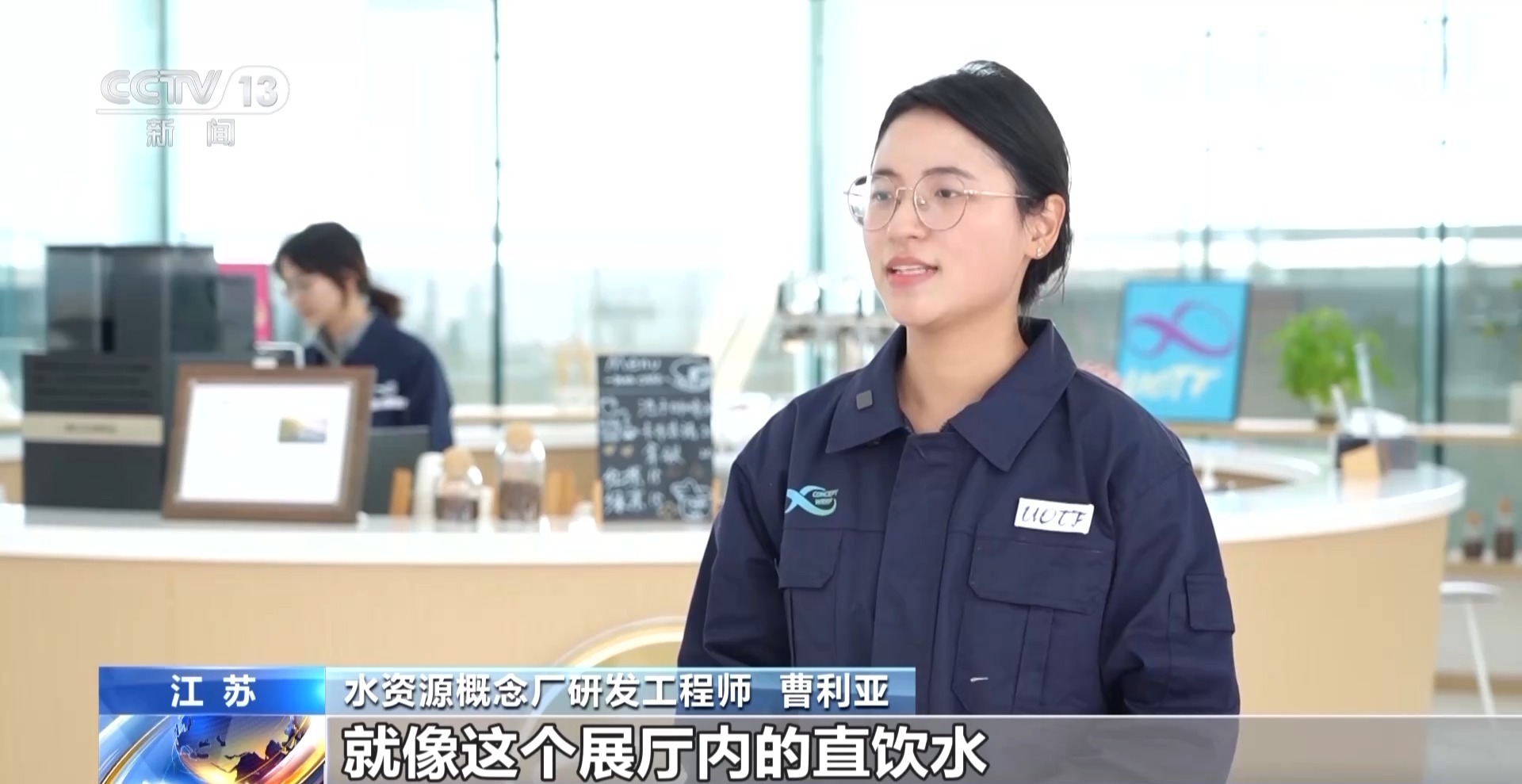 水资源概念厂研发工程师 曹利亚:就像这个展厅内的直饮水,以及泡咖啡的水,都是来源于处理后的尾水。
