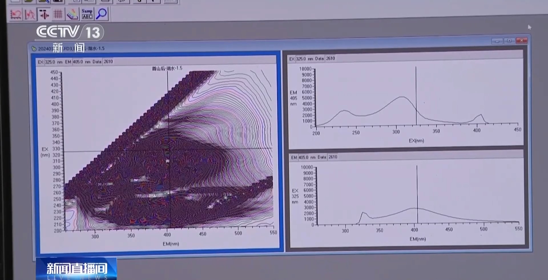 中国环境科学研究院流域水环境污染综合治理研究中心主任 高红杰:不同的废水有机物的组成是不太相同的。那么正是因为这些物质存在,所以在做三维荧光光谱的时候,才会出来这些峰值。也就是说每一个废水都具有自己独特的这个荧光光谱。