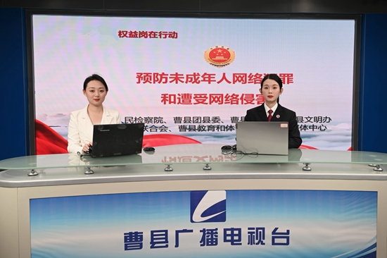 山东省曹县人民检察院未成年人检察部在电视台开展直播课程。