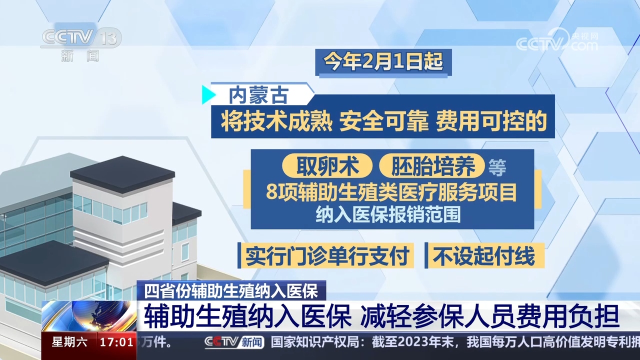 今年2月1日起,内蒙古将目前技术成熟、安全可靠、费用可控的取卵术、胚胎培养等8项辅助生殖类医疗服务项目纳入医保报销范围,实行门诊单行支付,不设起付线,职工基本医疗保险、城乡居民基本医疗保险遵循“多缴多得”的制度安排,报销比例分别为70%和50%。