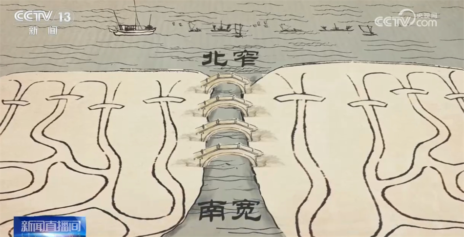 太湖溇港研究院执行院长沈林江解释称:“为什么这里特别窄呢?它主要的功能是束水,把水束小,流速就加快。太湖溇港有一个问题就是淤泥淤积,为了使溇港的管理可持续发展,巧借天力,尽量减轻人工清淤的难度,通过束水之后流速加快,把淤泥重新冲回太湖。”