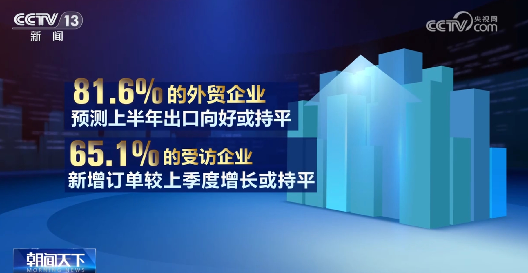 中国贸促会近期的一项调研显示,81.6%的外贸企业预测上半年出口向好或持平,65.1%的受访企业新增订单较上季度增长或持平。