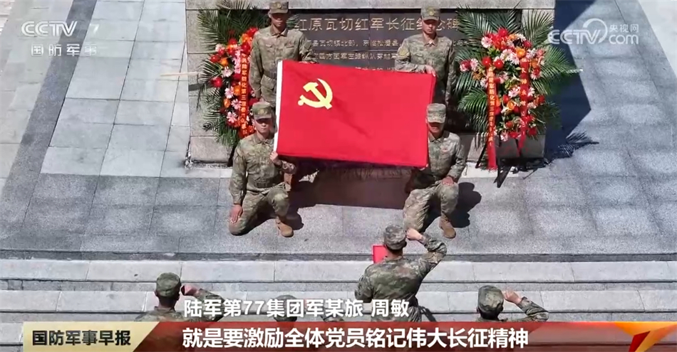 陆军第77集团军某旅周敏称:“今天我们在‘红军过草地纪念碑’前组织重温入党誓词,就是要激励全体党员铭记伟大长征精神,引领和带动官兵牢记初心,不断提高履行使命任务能力。”